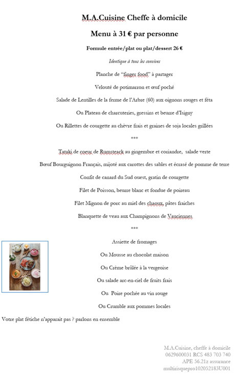 Marie Anne: Confiez moi le temps d'un repas votre cuisine et vos papilles. Des recettes faits maison, des produits frais et de qualité (Français, locaux, de petits producteurs) tel: 0629600031
