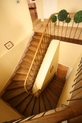 Ces 3 chambres, (1ch lit 140/190 bois de lit, 1 ch lit 160/200, 1 chambre avec 2 lits simple) sont prisées pour leur cachet d'origine : grande pièce lumineuse, moulures sculptées, parquet et mobilier ancien.